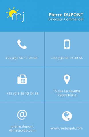 Voici une des nombreuses propositions de modèles de cartes de visites destinés aux salariés de la société Meteojob.